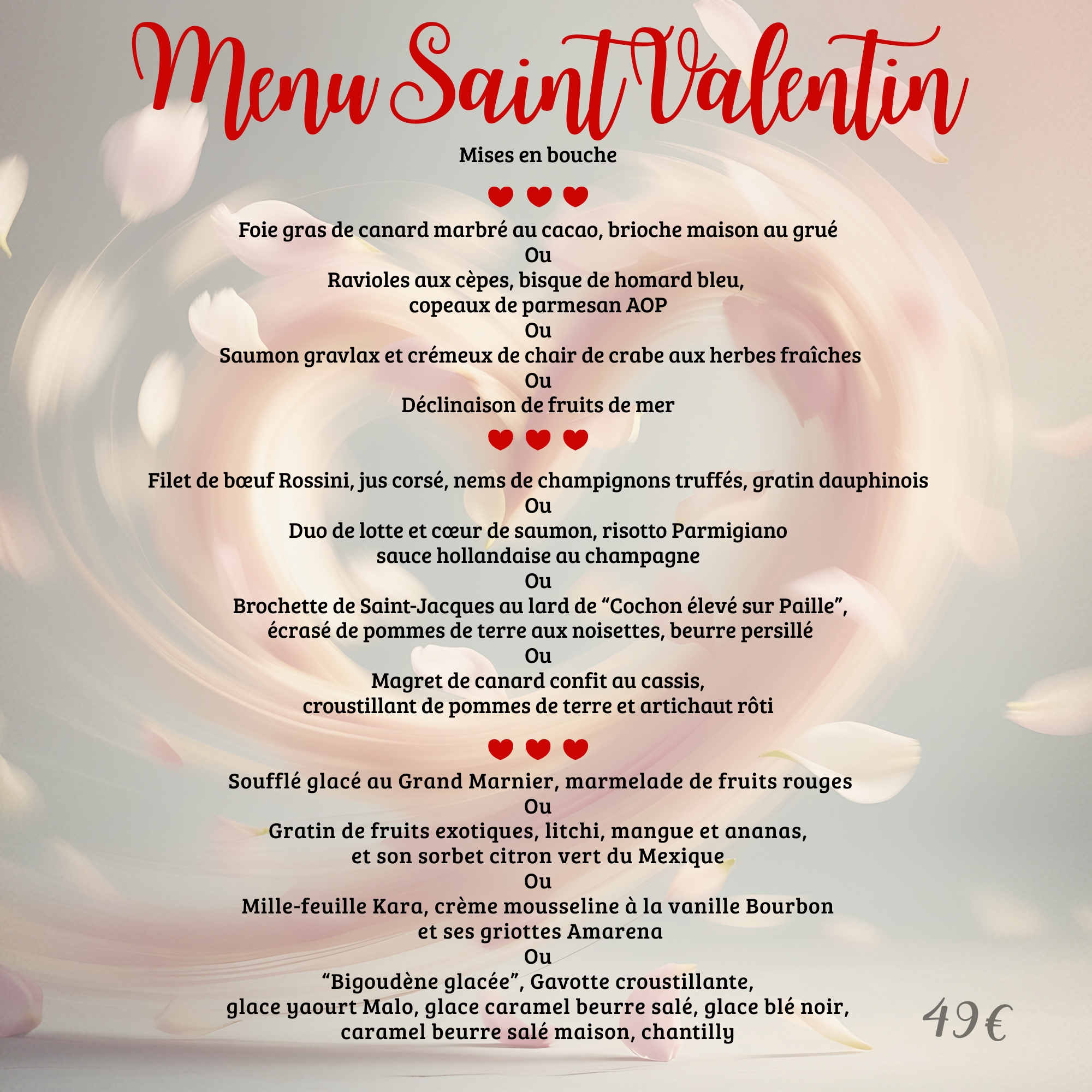 Menu spécial Saint-Valentin – réservez avant que votre ex ne le fasse.
